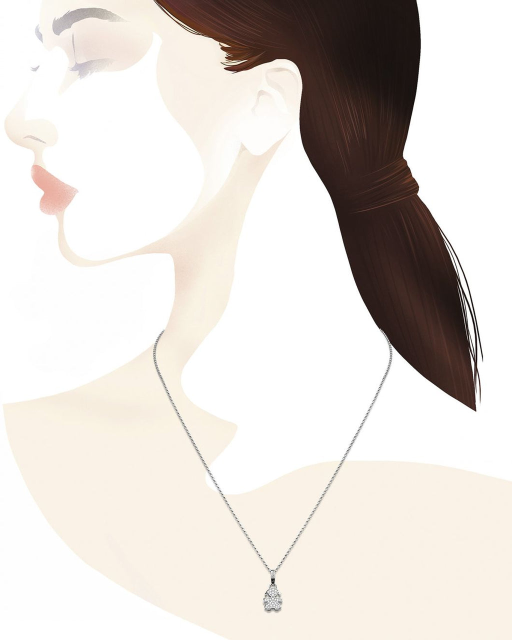Ciondolo in Oro Bianco 18 carati in pavé micro-setting di Diamanti 0,11 carati con collana coordinata in Oro.